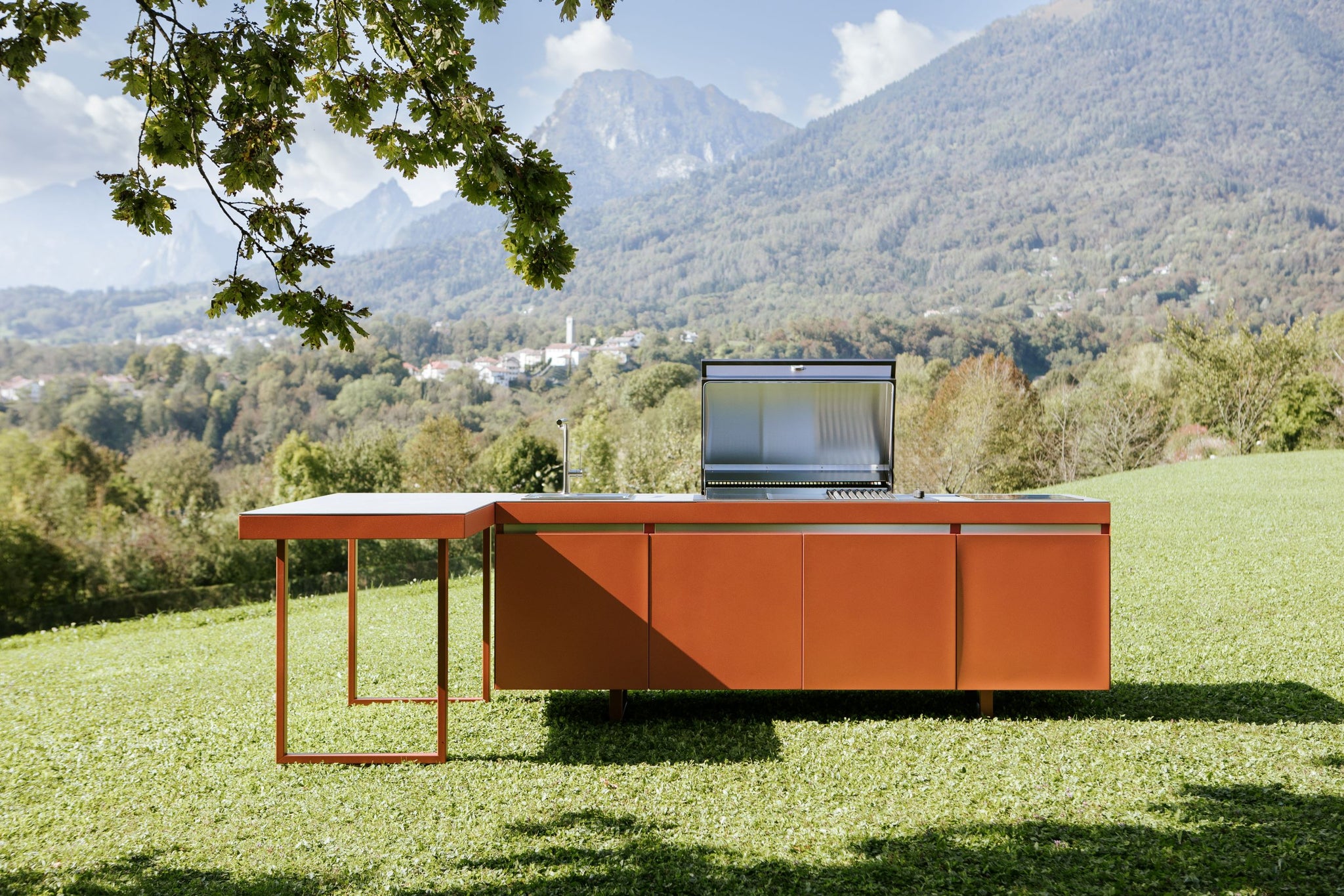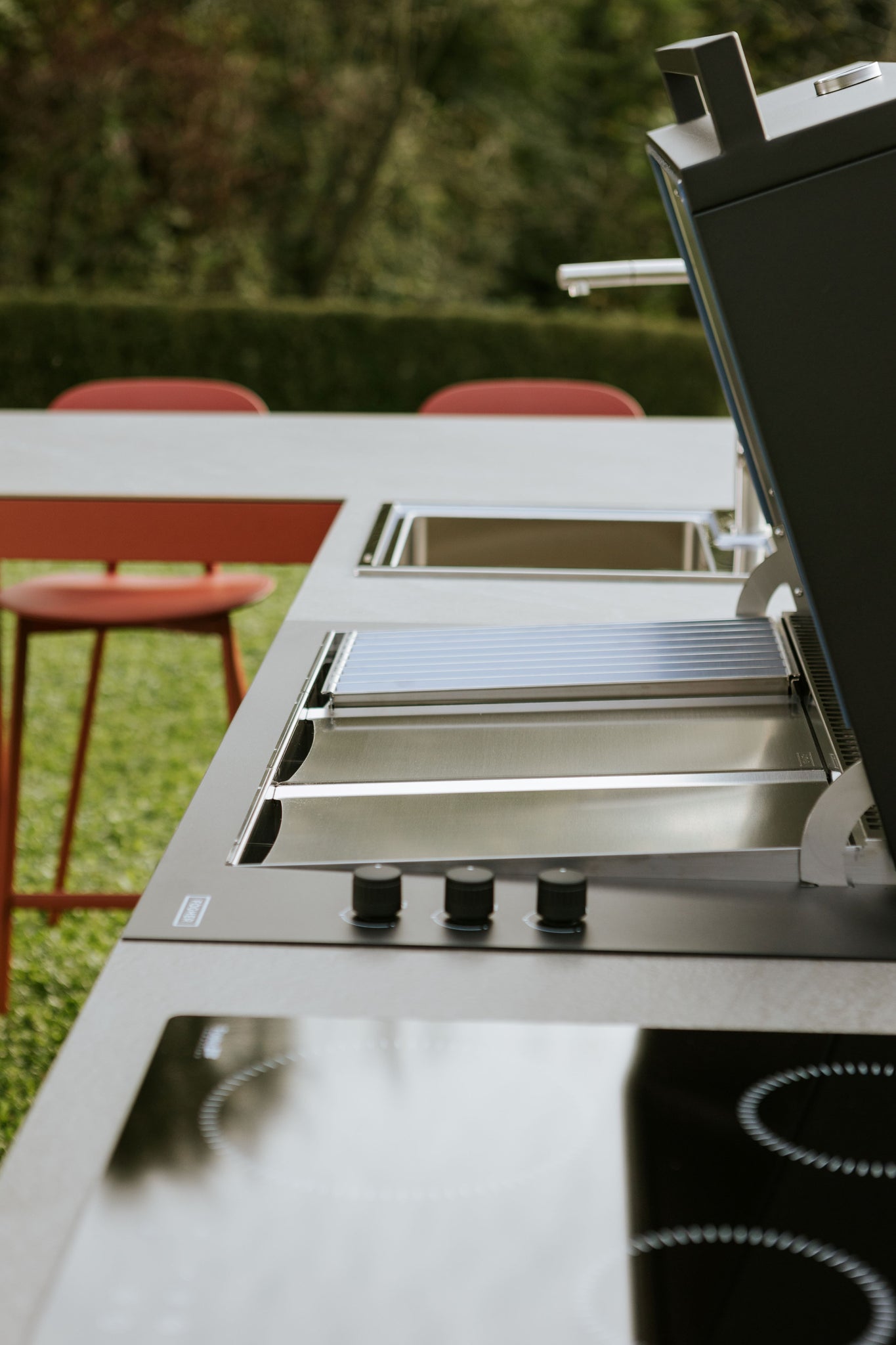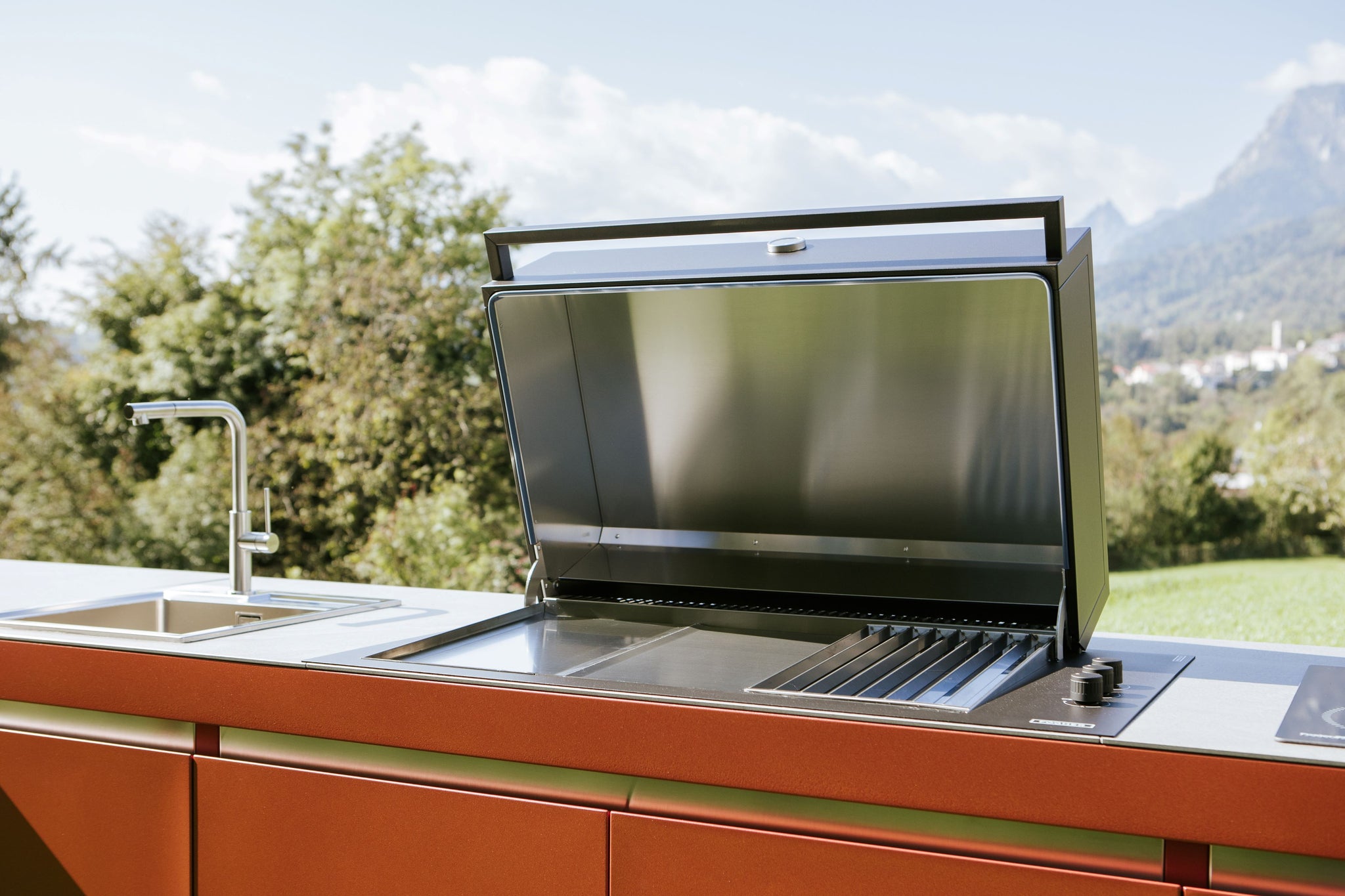 Luxuriöses Design: Farben in Obsidian oder Sienna kombiniert mit der eleganten grauen Keramikabdeckung machen die Küche zu einem Highlight in jedem Außenbereich.